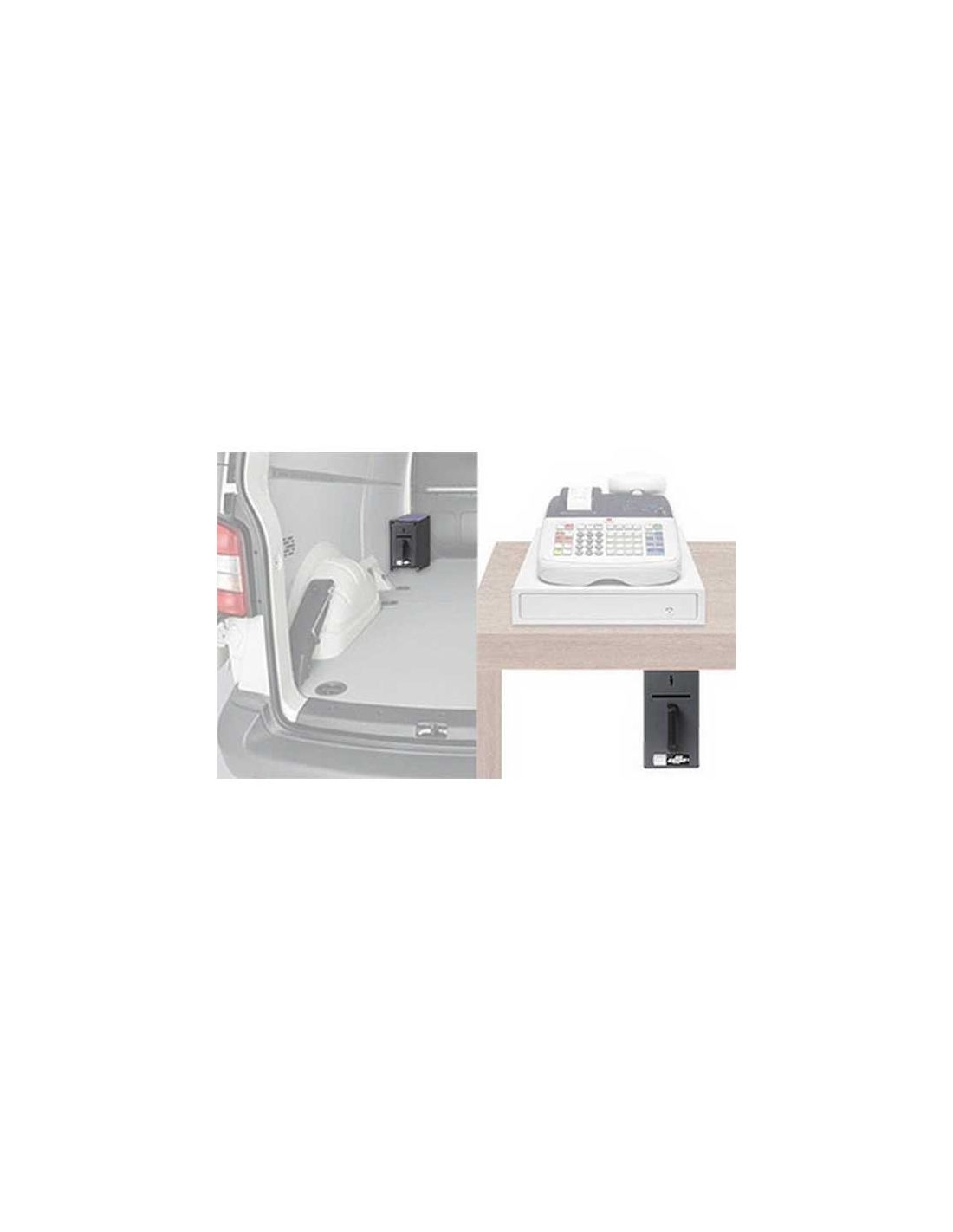 Caja de cobro portatil. Eficaz sistema para proteger el efectivo en un punto de cobro y transportarlo. Se trata de un anclaje metálico preparado para fijarlo debajo de un mostrador, en un vehículo o al lado de una caja registradora. Modelo CBU diseñado para su fijación bajo mostrador. Modelo CBD incorpora soporte para la fijación en la base de un vehículo o directamente al suelo.Caja de acero de 2 mm. de espesor. Sistemas de cierre.Cerradura de gorjas y doble paletón, con posiblidad de amaestramiento. Características principales Incluye los tornillos de fijación Asa ergonómica para facilitar el trasporte Caja de acero de 2 mm de espesor 4 agujeros de fijación