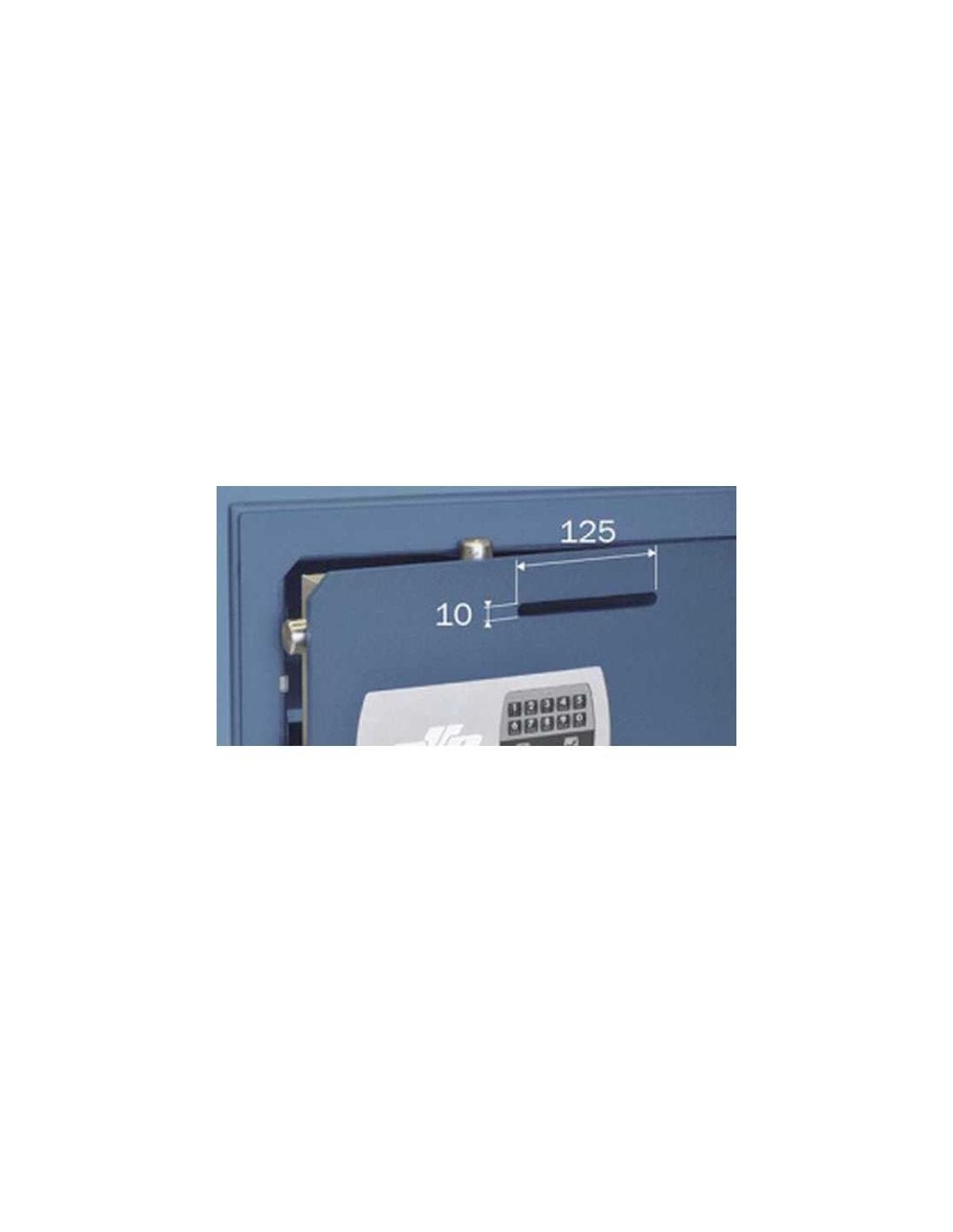 Submostrador antiatraco. Es la solución ideal para evitar los atracos en los establecimientos de venta al público. Dispone de un cajón con guías deslizantes, en cuya parte delantera incorpora una bandeja para la clasificación de billetes/monedas.Puerta y marco de acero de 8 mm. de espesor, Caja de acero de 3 mm. de espesor. Sistemas de cierre.Combinación electrónica con sistema Ocluc. Características principales 5 bulones de 20mm.Giratorios Fijación en base Buzón anti-pesca Luz interior Bandeja clasificador de monedas / billetes en cajón superior Cajón superior con cerradura de 7 gorjas y dolble paletón Color a elegir Ral 5009 o Ral 7035