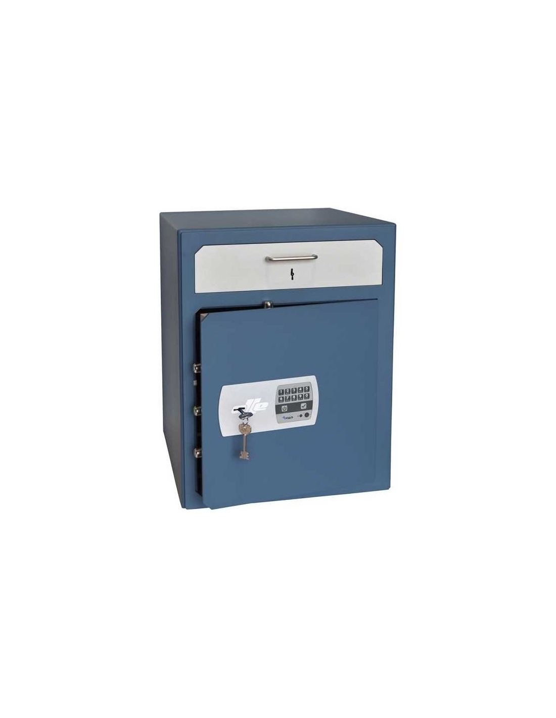 Submostrador antiatraco. Es la solución ideal para evitar los atracos en los establecimientos de venta al público. Dispone de un cajón con guías deslizantes, en cuya parte delantera incorpora una bandeja para la clasificación de billetes/monedas.Puerta y marco de acero de 8 mm. de espesor, Caja de acero de 3 mm. de espesor. Sistemas de cierre.Combinación electrónica con sistema Ocluc. Características principales 5 bulones de 20mm.Giratorios Fijación en base Buzón anti-pesca Luz interior Bandeja clasificador de monedas / billetes en cajón superior Cajón superior con cerradura de 7 gorjas y dolble paletón Color a elegir Ral 5009 o Ral 7035