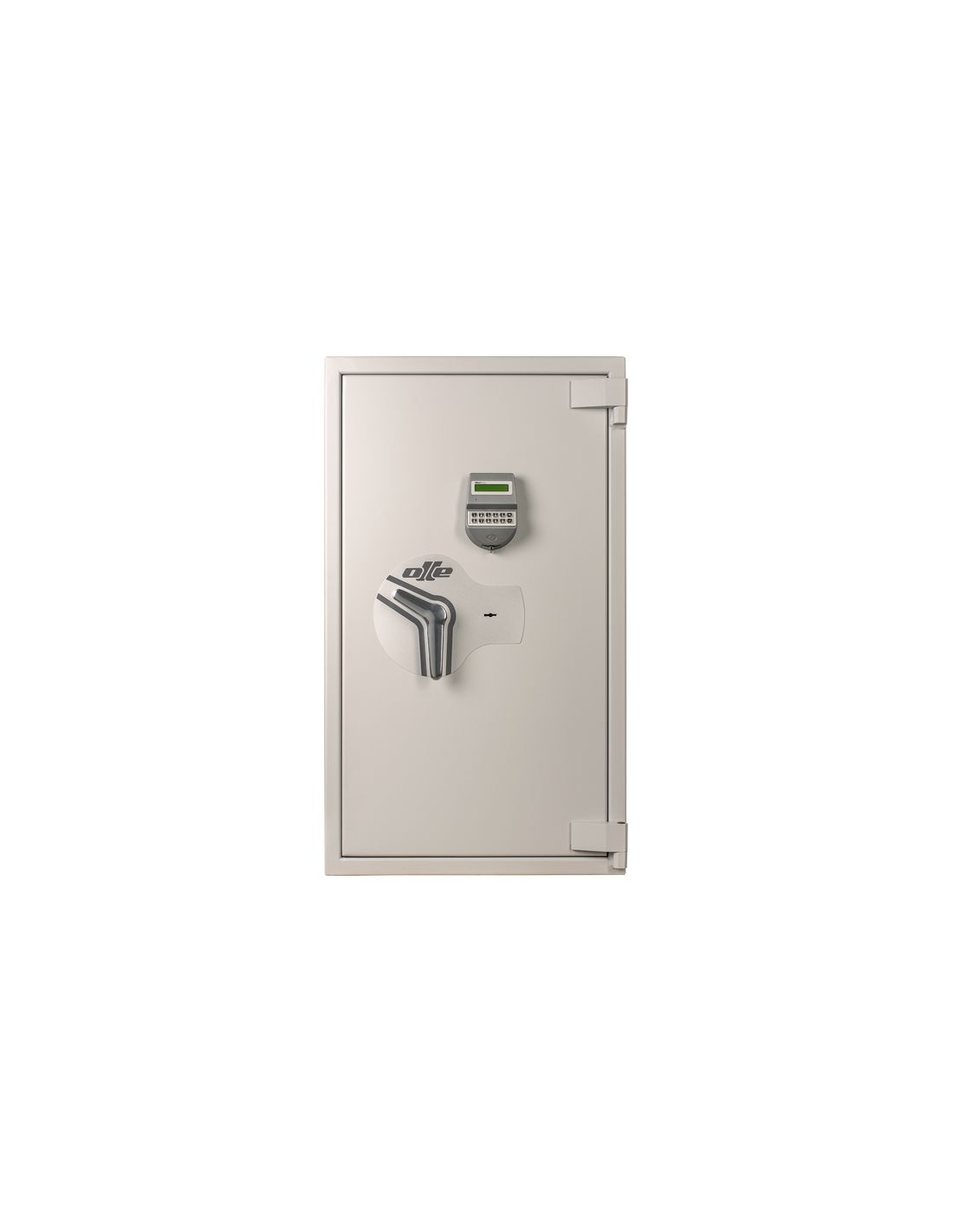 Caja fuerte Olle certificada en Grado IV . Esta serie es el resultado de un gran esfuerzo en el estudio de nuevos materiales, para llegar a obtener la máxima resistencia a los ataques previstos en la norma UNE EN-1143-1 GRADO IV.Puerta y caja de 50 mm. de espesor. Blindaje anti-taladro. Bulones giratorios de Ø 25 mm. Sistemas de cierre.Combinación electronica con retardo y bloqueo. Cerradura de 8 gorjas y doble paletón. Homologaciones: VdS Klasse 2 / EN 1300 Clase B / a2p Niveau BE. Apertura por tirador. Características principales Cerradura de 8 gorjas y doble paletón. Puerta y cuerpo de 50 mm. de espesor. Sistema de rebloqueo en caso de ataque. Estantes anti-vuelco y regulables en altura. Anclajes de M16 incluidos. Certificada Grado IV Posibilidad de apertura retardada y bloqueo horario. Homologaciones VdS Klasse2 / EN 1300 Clase B