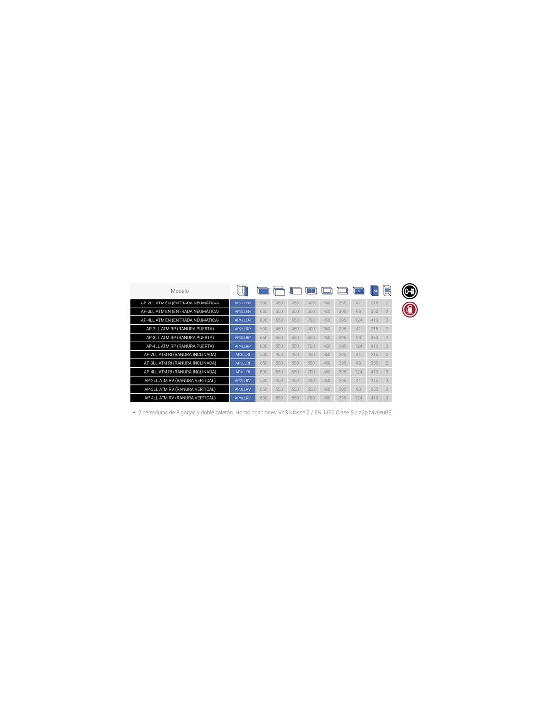 CARACTERÍSTICAS Medidas Altura:800 Ancho:550 Fondo:550 Ancho interior :450 Alto interior:700 Fondo interior:405 Espesor cuerpo:50 Espesor puerta:50 Espesor marco:50 Volumen en litros:125 Peso caja seguridad:410 Bandejas:3 Materiales de color Códigos Código :72033635 Marca :Olle Código del Fabricante:AP4LLEN Código de barras:8429408007572 Serie:Serie IV ATM Garantía y entrega Días entrega:5 Seguridad y funciones Sistema apertura:Doble llave