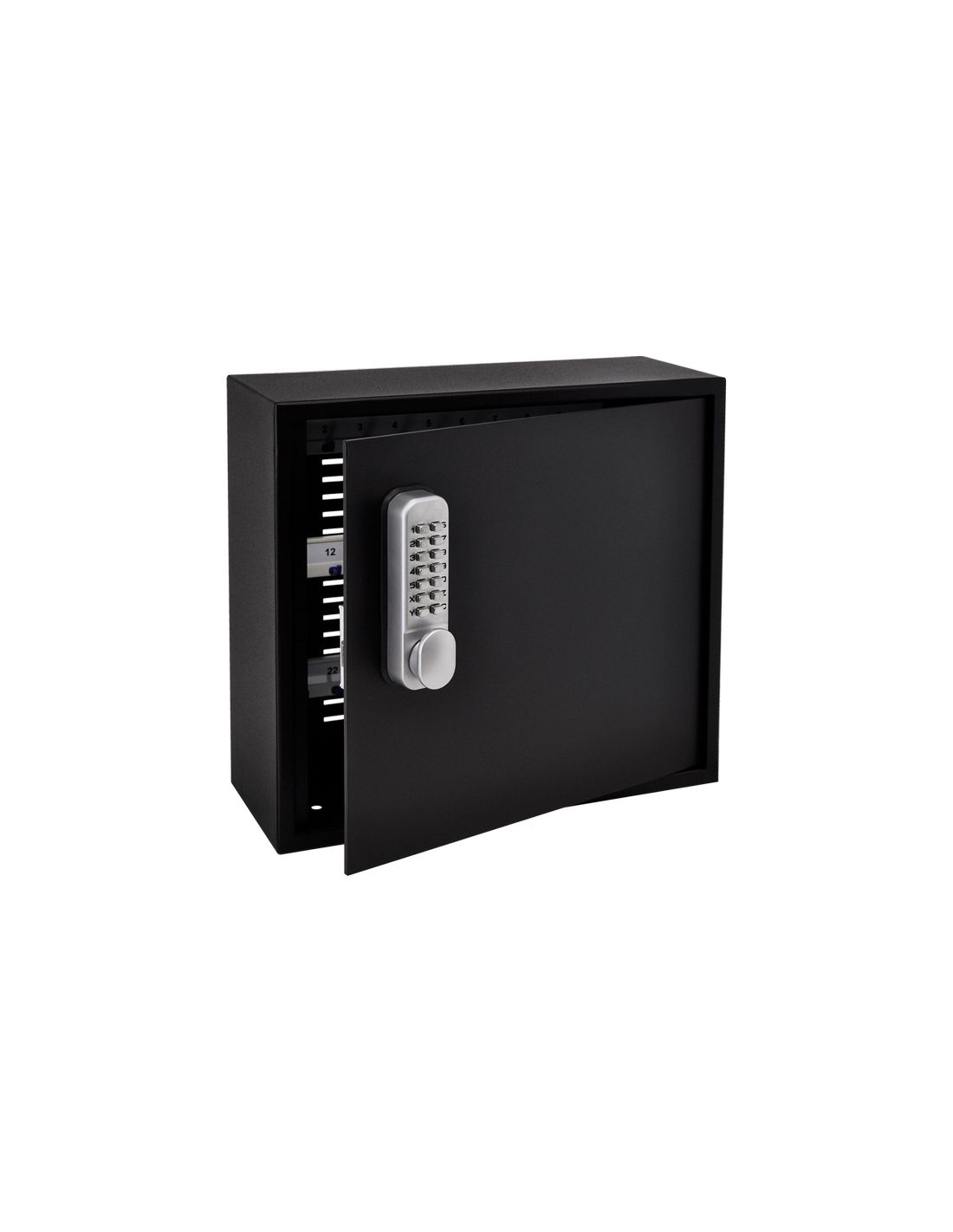 Práctico armario llavero mural para la organización de las llaves en el hogar o negocio.Sistemas de cierre.Combinación mecánica. Apertura por tirador. Características principales Puerta de acero de 4mm de espesor Caja de acero de 1,5mm de espesor Colgadores de llaves y llaveros numerados Apertura hacia la derecha Colgadores y llaveros numerados. Combinación mecánica con pulsadores.