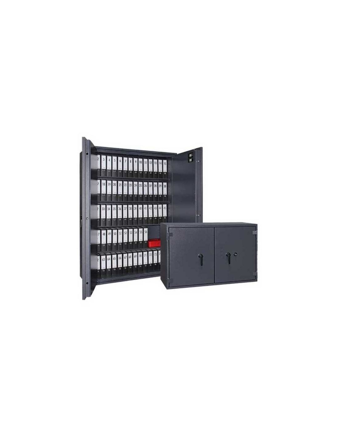 Armarios ignífugos para papel, certificados contra el fuego según UNE EN 15659 Grado LFS 30 P, es decir para 30 min. sin que en el interior se excedan los 170ºC, ademas disponen de la certificación contra el robo según UNE EN 14450 Grado S2. Gran capacidad . Idoneos para un correcto almacenamiento de archivos industriales.Armario con paredes de 48 mm. de espesor. Puerta de 95 mm. de espesor. Sistemas de cierre.Cerradura de gorjas y doble paletón. Accionamiento mediante manivela de 11 bulones de Ø 20 mm.: 3 laterales, 4 superiores y 4 inferiores. Características principales