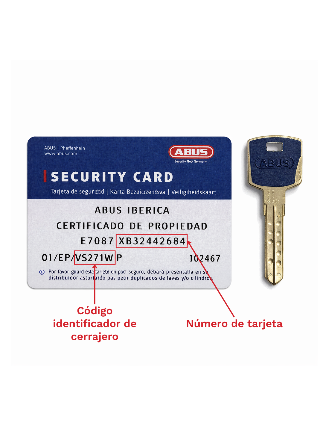 Código de cerrajero, número de tarjeta y una imagen del DNI junto a la tarjeta.